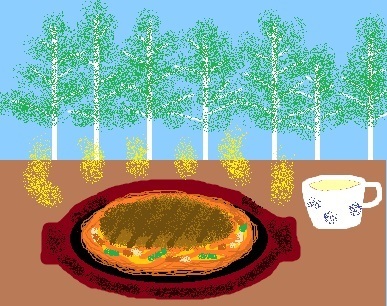 イラストの「カツナポリタン」が熱々で味もめちゃ美味しかった